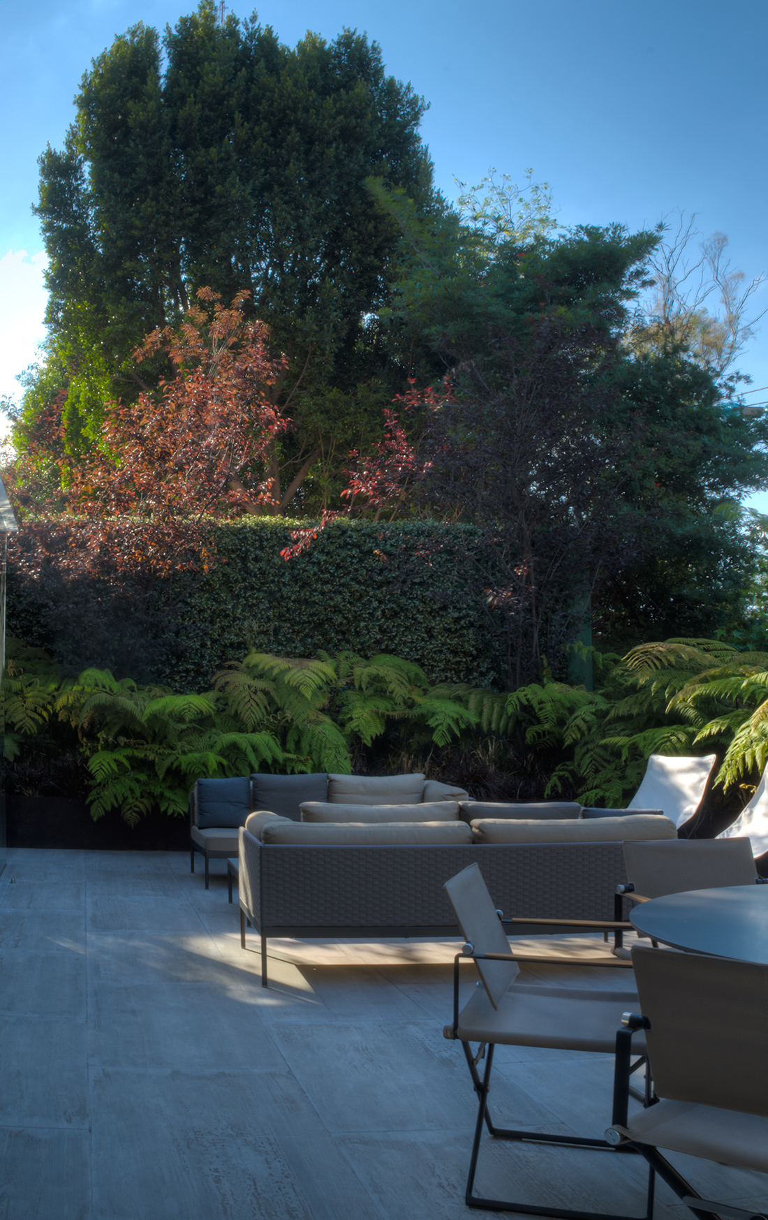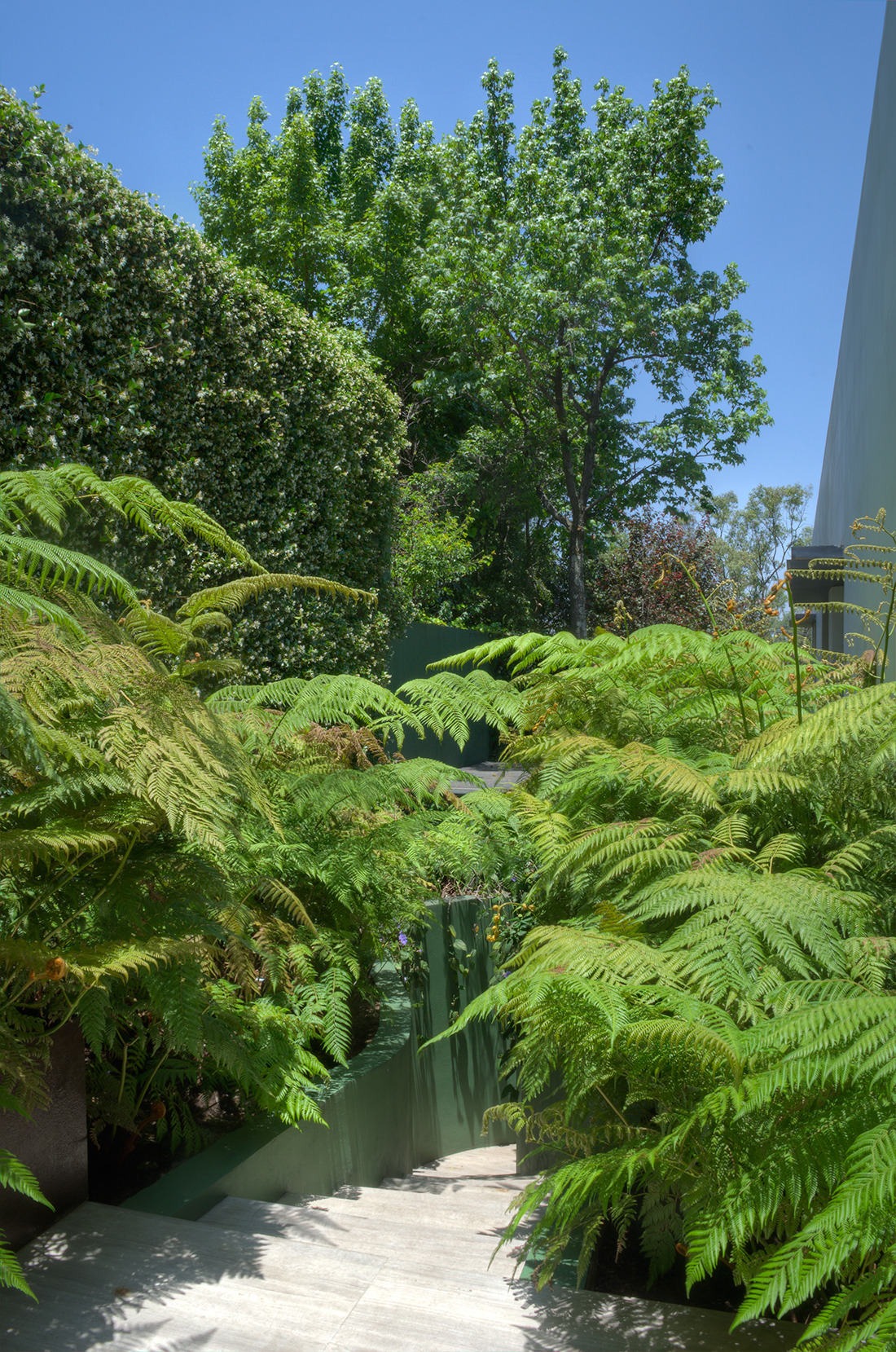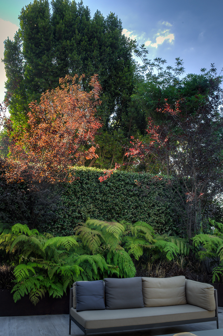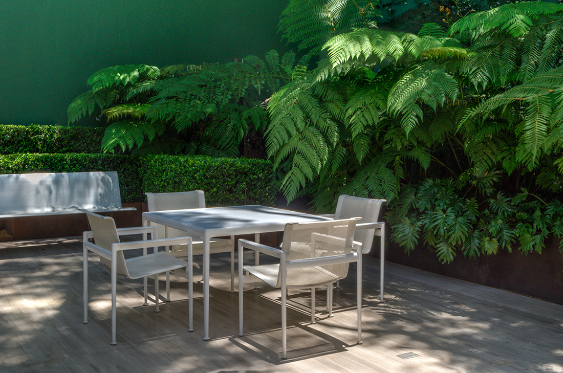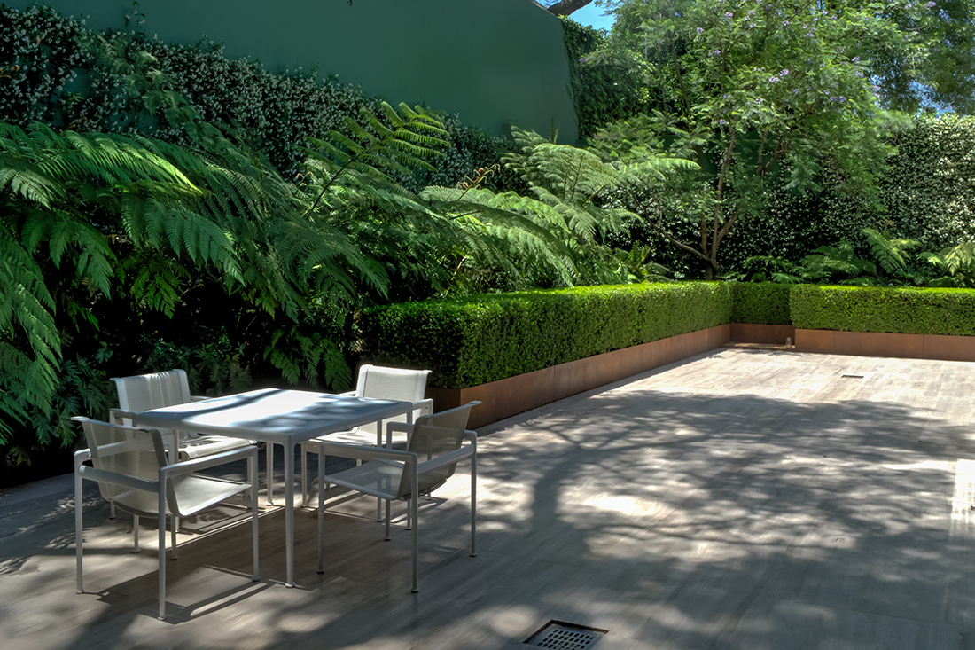 Las fotografías representan la forma en que el exterior e interior se conjuntan para crear una armonía visual. El contraste de la calidez de la iluminación interior y la arquitectura estática con el dinamismo y la vivacidad verde de las plantas.
